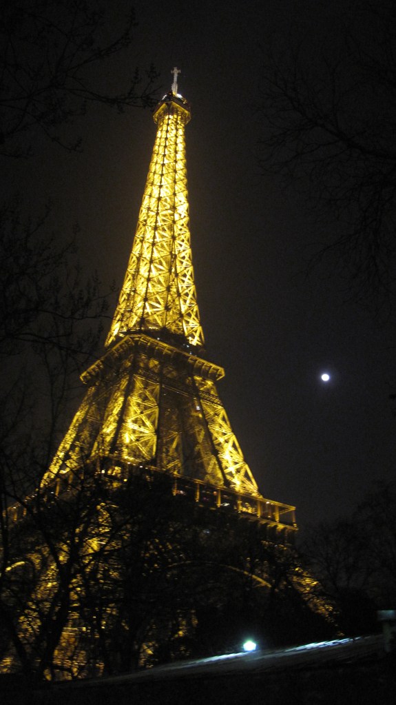 The Eiffel Tower at night.