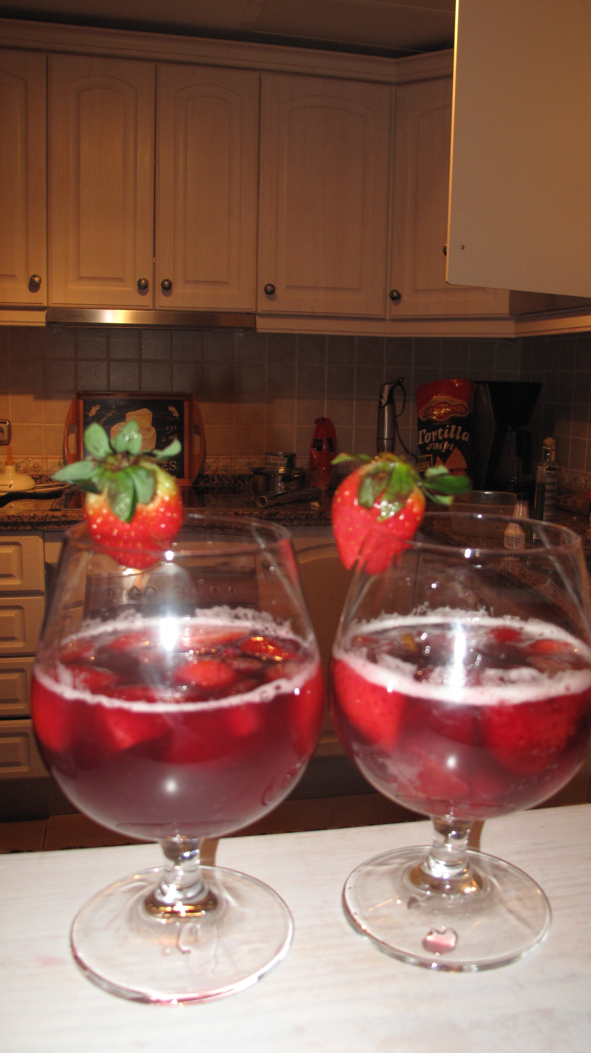Sangria we made with the bottle of wine reception gave us as a welcome gift, plus lots of fruit from local fruterias!