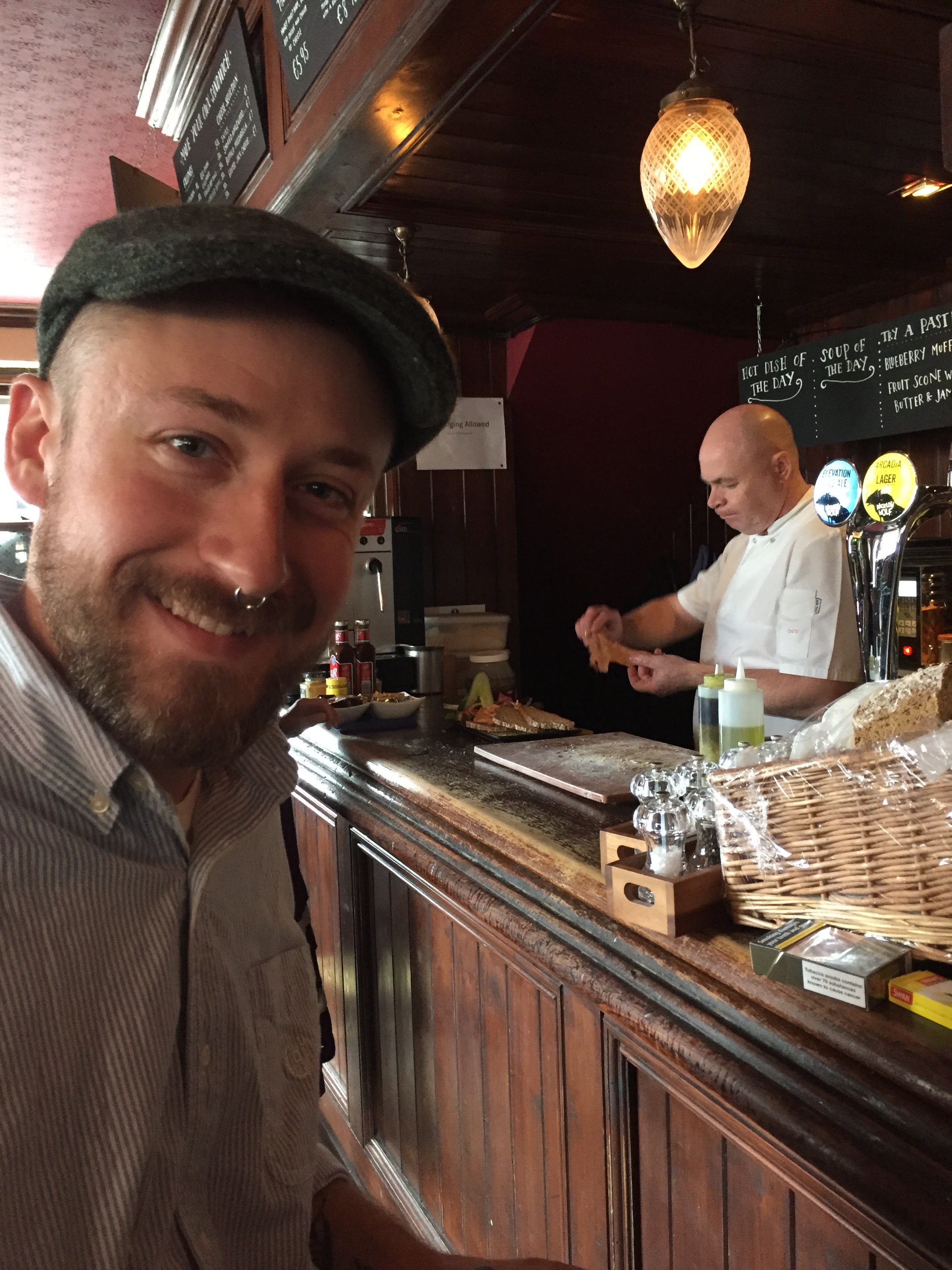 Kyle and the owner painstakingly assembling our meal in the background.